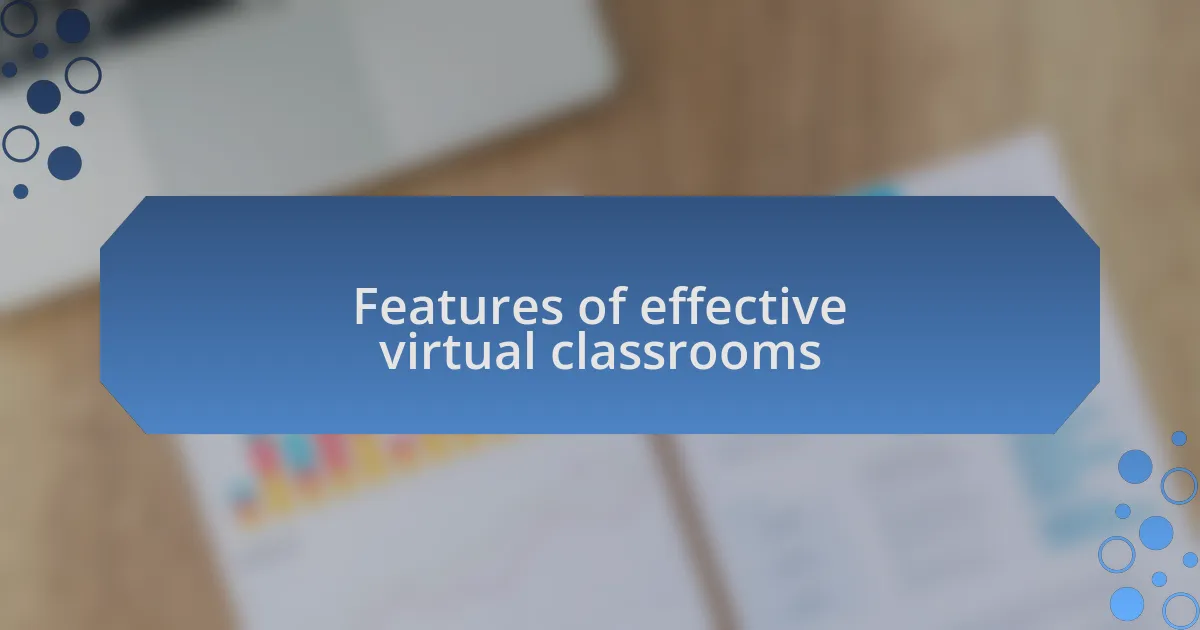 - Effective virtual classrooms emphasize interactivity, simplicity in navigation, and a sense of community among participants.